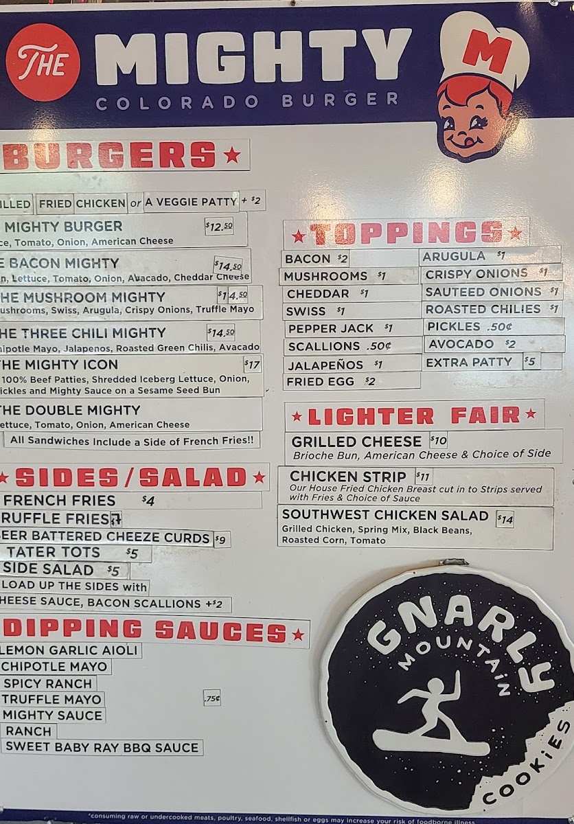 Introducing "The Mighty Colorado Burger," a hidden gem nestled in Arvada, CO. This delightful eatery offers a mouthwatering selection of handcrafted burgers, each featuring a perfectly cooked 1/3 lb patty. Highlights of the menu include: